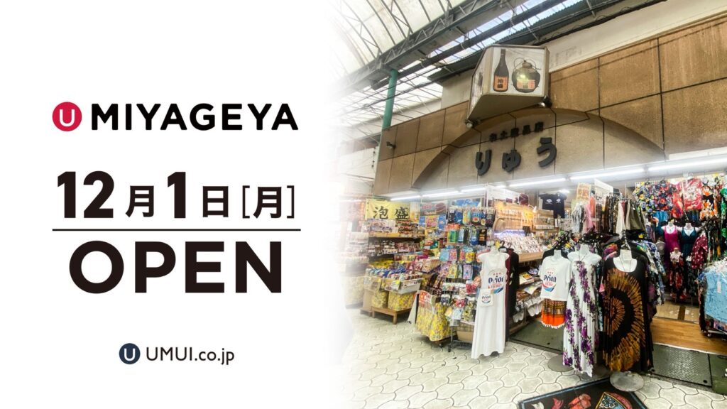 株式会社UMUI(本社:沖縄県那覇市)は国際通りから公設市場に続く“市場本通り”の沖縄県那覇市松尾2丁目8-28にて観光土産品を取り扱うセレクトショップ「MIYAGEYA」の1号店を12月1日にオープンすることをご報告させていただきます。地元メーカーの商品を厳... -