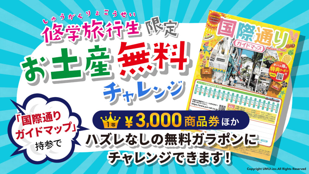 沖縄県那覇市の国際通りから公設市場に続く“市場本通り”にて沖縄土産店を運営する株式会社UMUI(本社 沖縄県那覇市松尾2丁目8-28)は、2026年4月1日より、修学旅行生を対象とした特別イベント「お楽しみガラポン抽選会」を開催致します。本企画は平均5,00... -